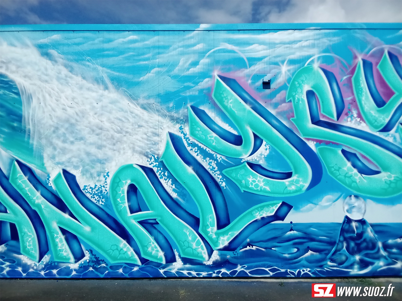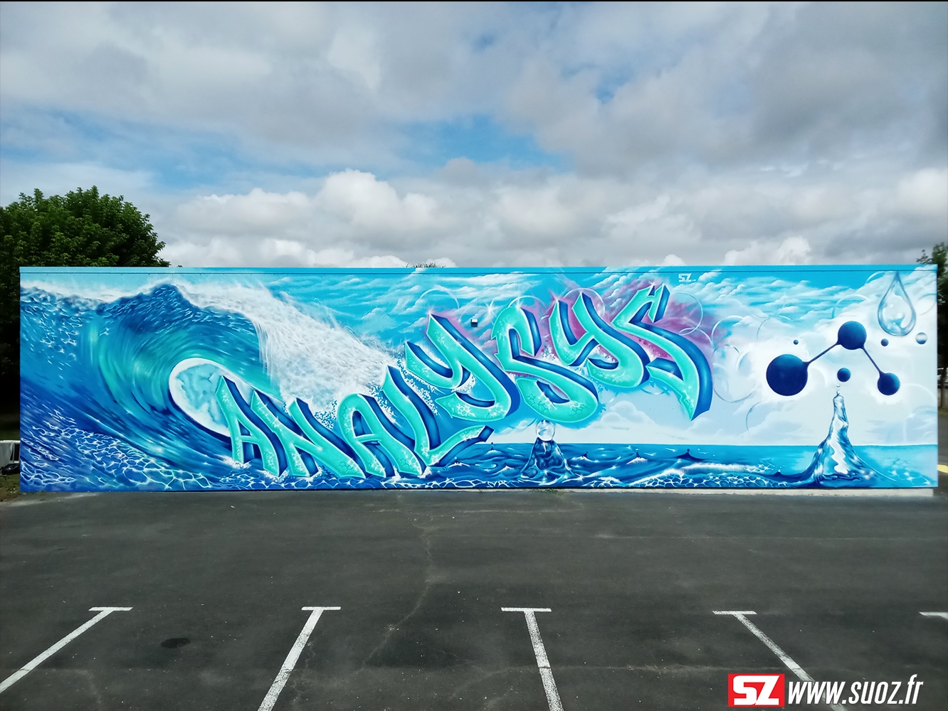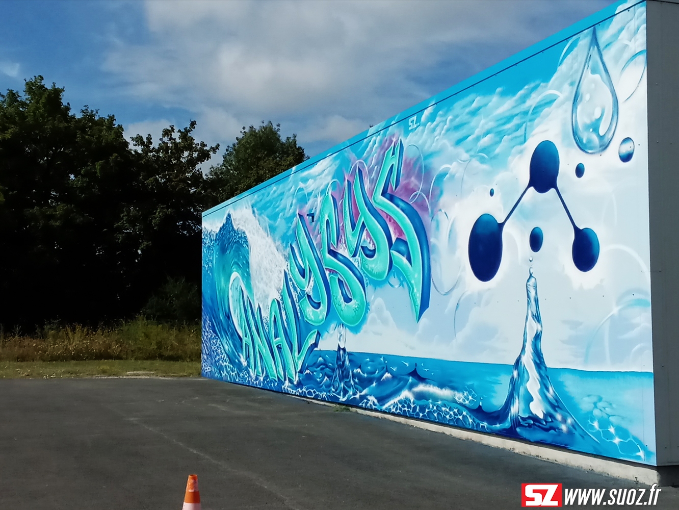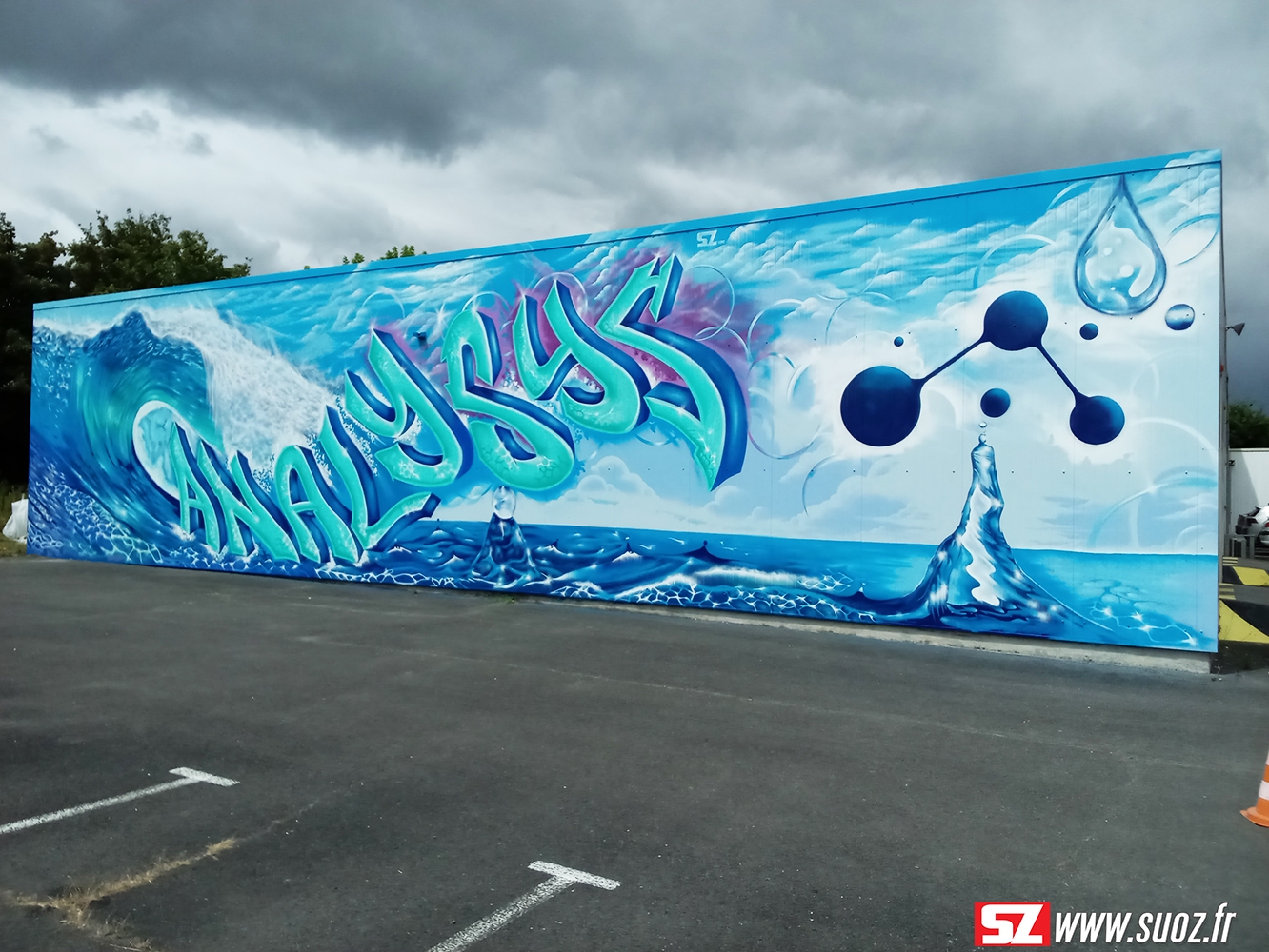 Au cœur de la pittoresque région du Cognac, à Jarnac, se trouve l’entreprise Analysys (https://www.analysys-jarnac.fr/), spécialisée dans le traitement des eaux industrielles. Dans une collaboration artistique impressionnante, une fresque graffiti street art a émergé, captivant les passants et les visiteurs tout en reflétant le thème central de cette entreprise : l’eau.